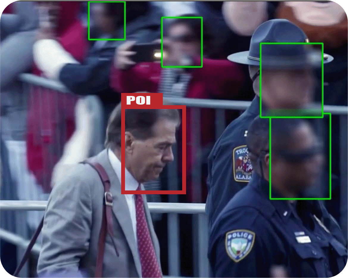 Cannot identify persons of interest (individual or multiple) in a crowd.